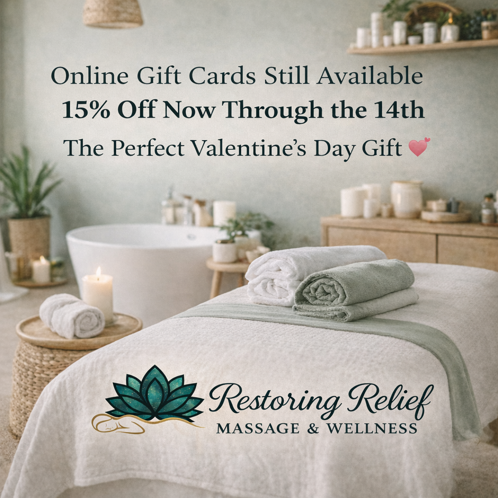 At Restoring Relief Massage & Wellness, I’m here to support your wellness goals in, whether that means easing tension, managing stress, improving mobility, or simply giving your body the care it needs to thrive.